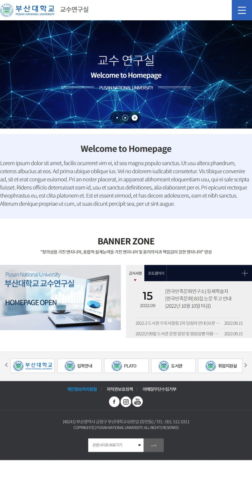 소기관/교수 연구실을 위한 간편 템플릿 목록입니다. 디자인 템플릿 4종으로 구성되어있습니다. 템플릿을 클릭하시면 자세한 템플릿 정보를 확인하실 수 있습니다. 템플릿 내의 학과/기관/교수 명칭부분 상관없이 모든 기관/교수연구실에서 사이트 템플릿을 선택 하실수 있습니다. TYPE-Simple-01 PC tab mobile TYPE-Simple-02 PC tab mobile TYPE-Simple-03 PC tab mobile TYPE-Simple-04 PC tab mobile